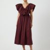 Long sleeved mini dress Round neck Cutline at waist Pleated skirt Regular fit