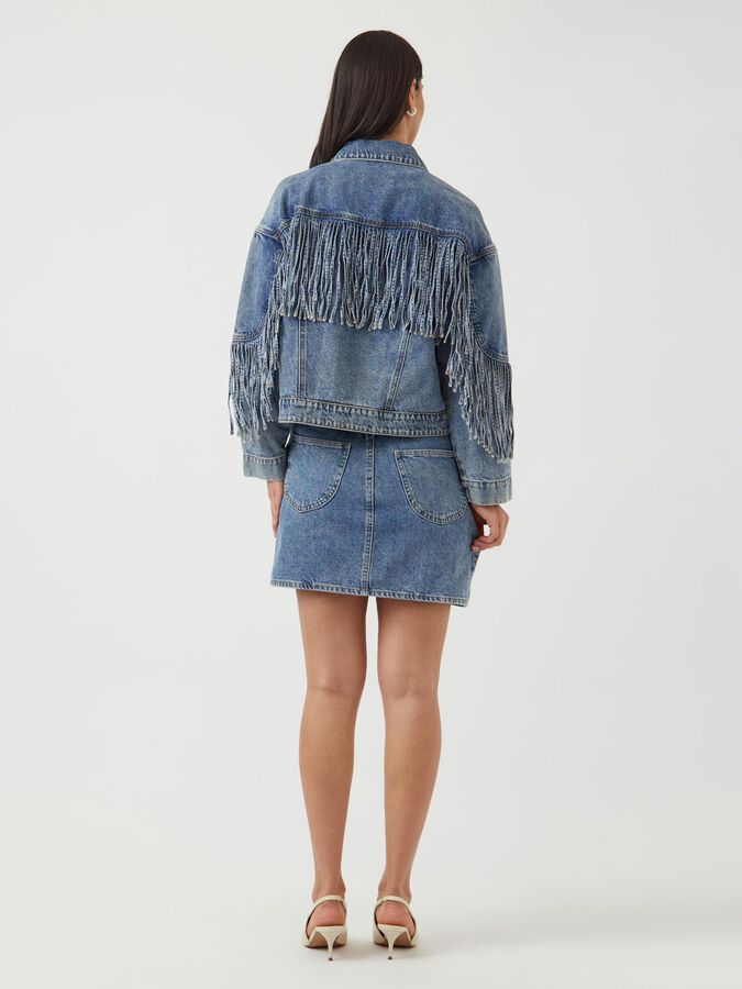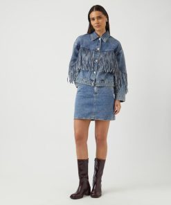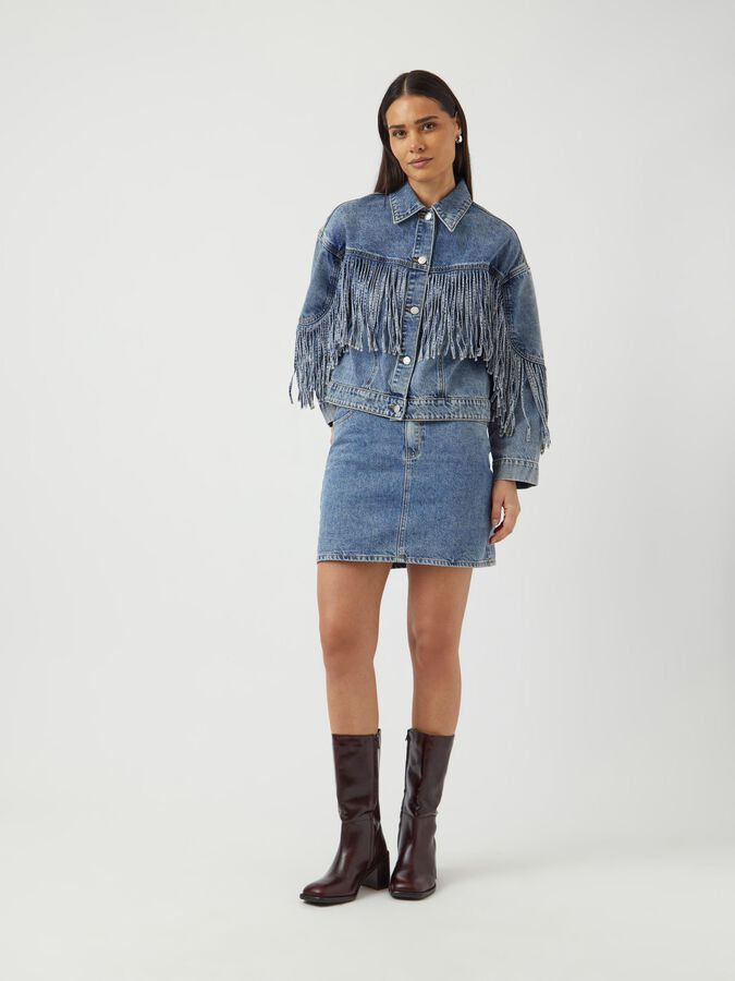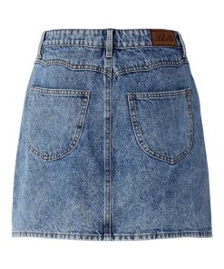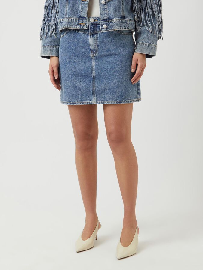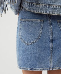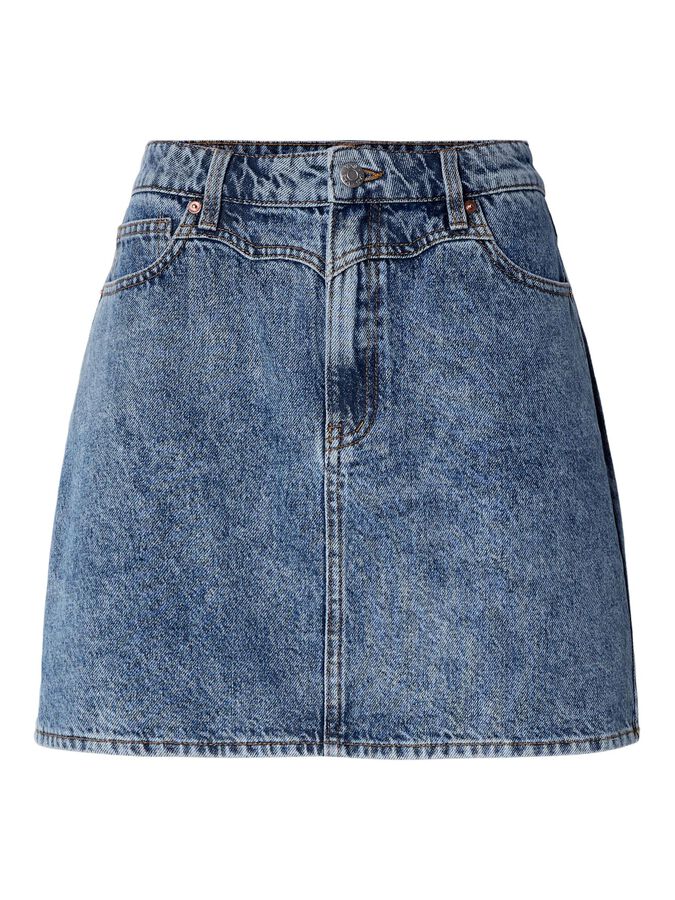 Welcome spring season with fresh spring fashion news such as dresses, light knitwear, trousers, skirts, shirts and tops in bright and joyful colours. This style is made from a cotton fabric mix, manufactured in a twill weave to achieve the classic denim look. The twill weave contributes to the high endurance of the fabric. Product type: Denim skirt Pockets : Side pocket Pockets : Back pockets Pockets : Coin pocket Closing : Button and zip fastening Length/Size : Short Extra details: Stitching detail