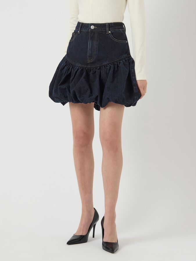 This style is made from a cotton fabric mix, manufactured in a twill weave to achieve the classic denim look. The twill weave contributes to the high endurance of the fabric. Product Type : Denim skirt Closing : Button and zip fastening Pockets : Back pockets, Coin pocket, Side pockets