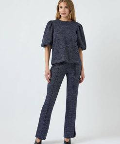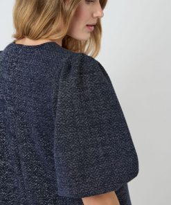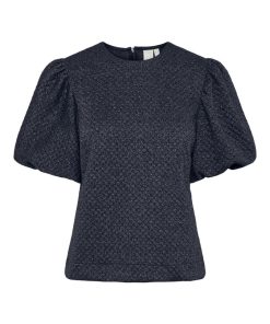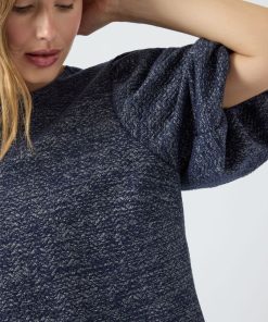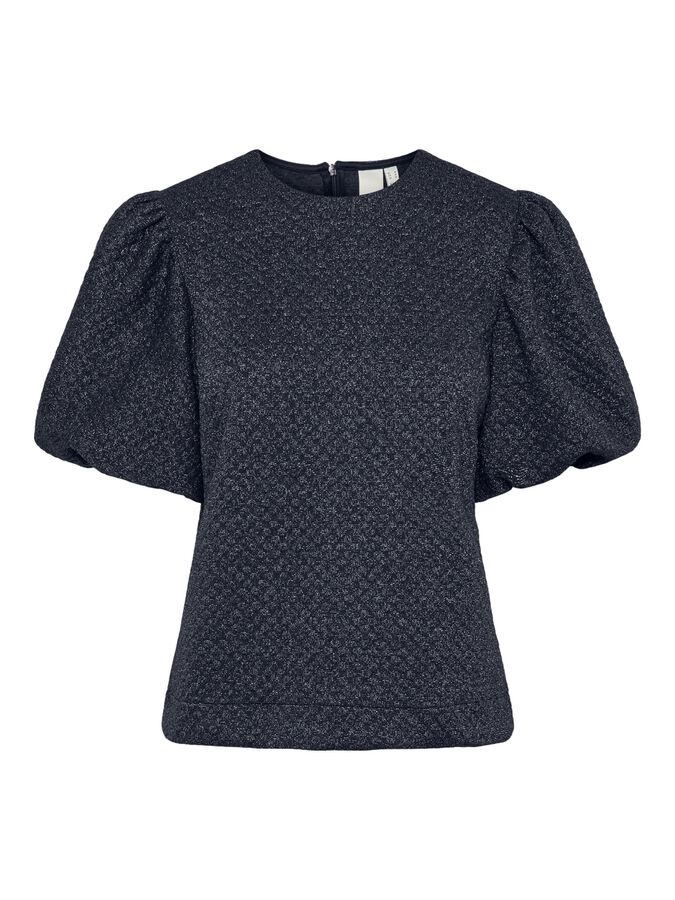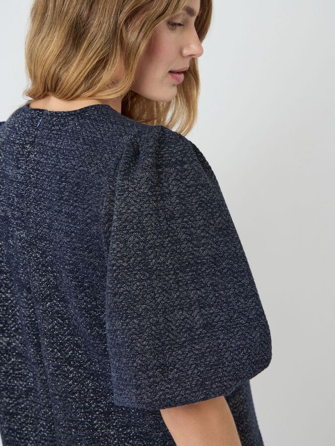 Jacquard puff sleeved top Part of a matching set Round neck Back zip fastening Regular fit Model is wearing size M
