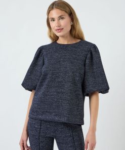 Jacquard puff sleeved top Part of a matching set Round neck Back zip fastening Regular fit Model is wearing size M