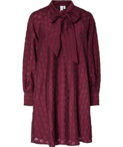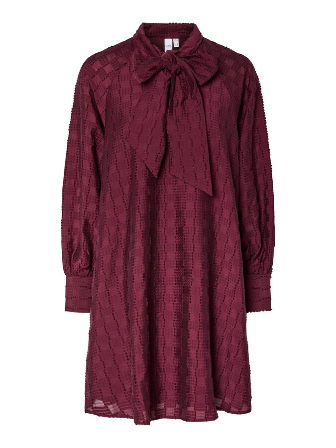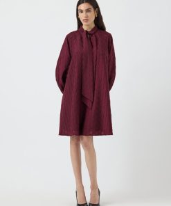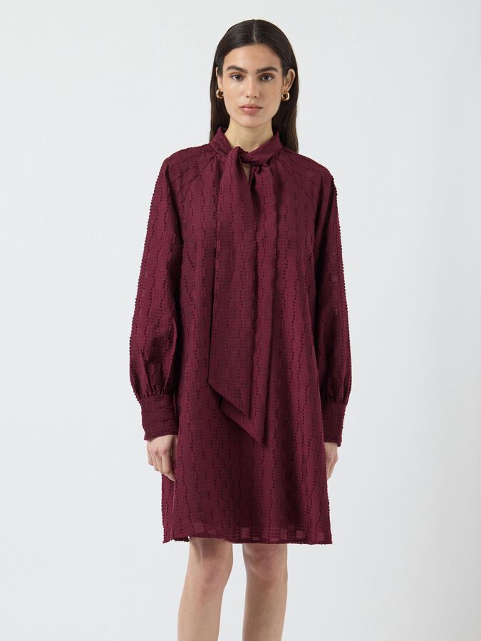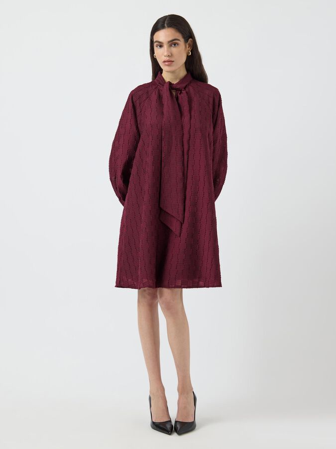 This style is made from a polyester fabric, which is a very durable fabric. Product type: Dress Neck : High neck Sleeve : Long sleeves Length/Size : Short Extra details: Bow detail Fit : Relaxed Fit