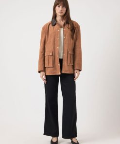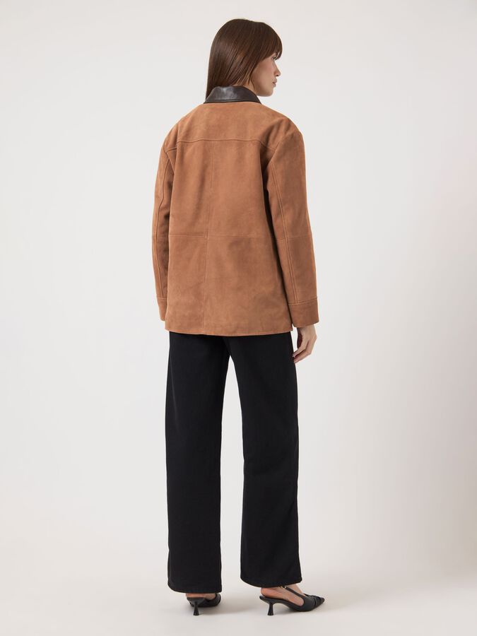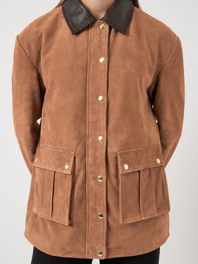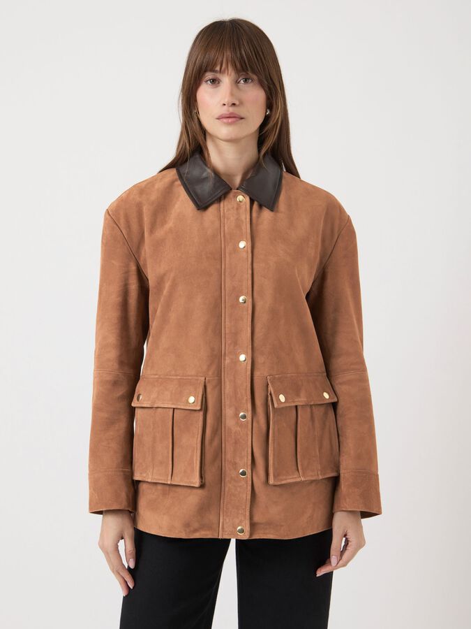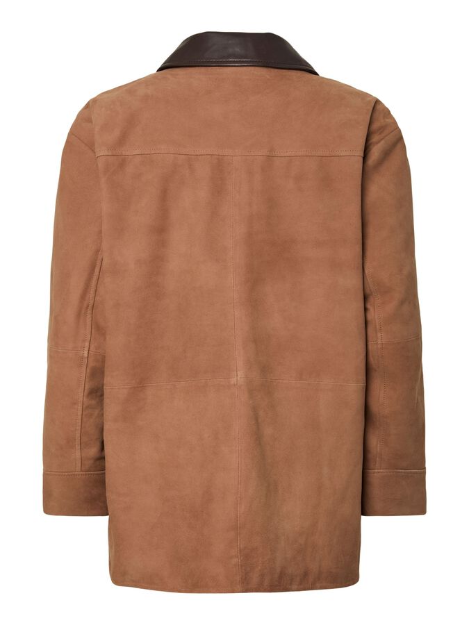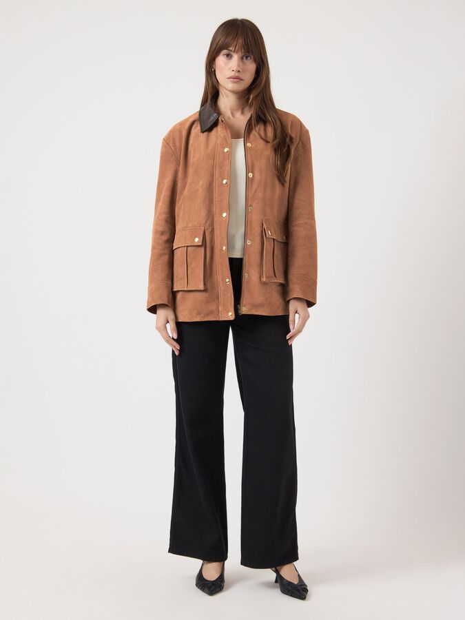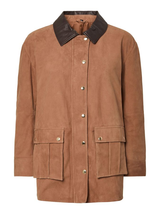 A leather jacket never lets you down. Our leather jackets exude confidence and sophistication while also being effortlessly cool and look great with denim and dresses. This style is made from real leather, which has an upgraded look and will be a longlasting item in your wardrobe. Leather is a byproduct of the food industry. Product Type : Leather jacket Neck : Spread collar Sleeve : Long sleeves Closing : Press stud fastening Pockets : Front pockets with press stud fastening
