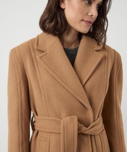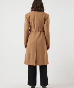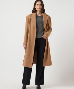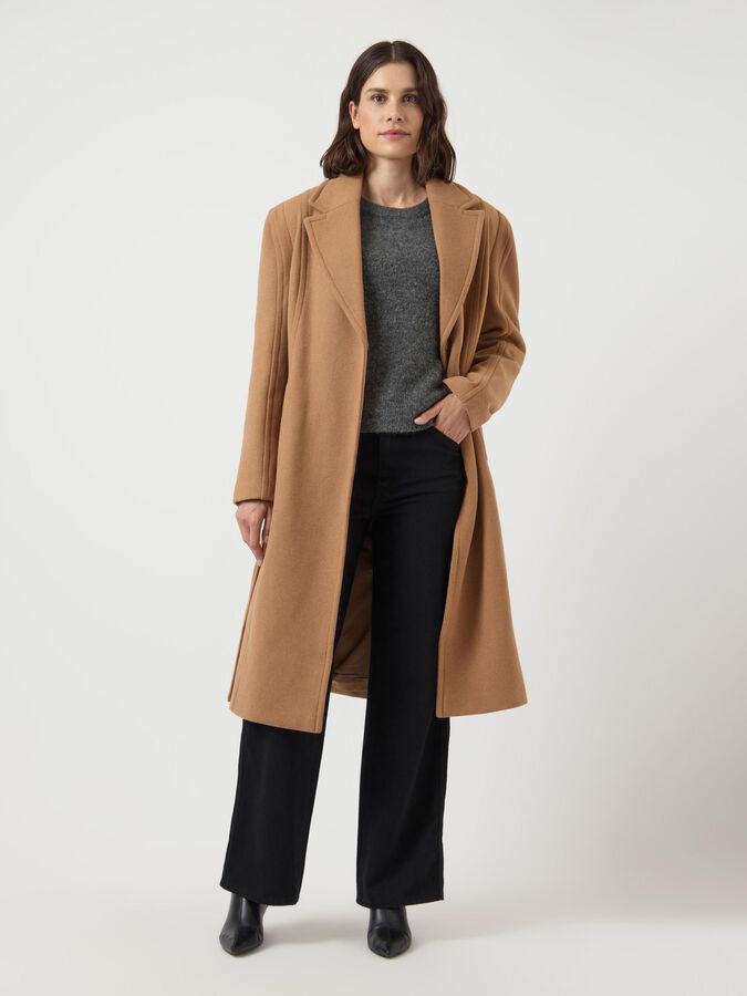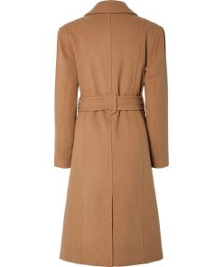This style is made from a mix of fibres, including wool. Wool is a natural fibre which is highly breathable. Wool is also temperature regulating, meaning it will keep you warm when it is cold, but also cool you down in warm weather. Product type: Coat Pockets : Side pockets Closing : Button fastening Closing : Belt fastening Neck : Reverse Length/Size : Long Extra details: Back slit