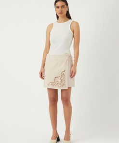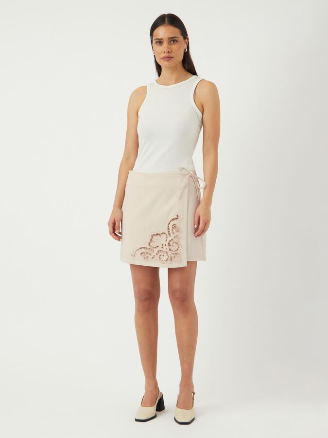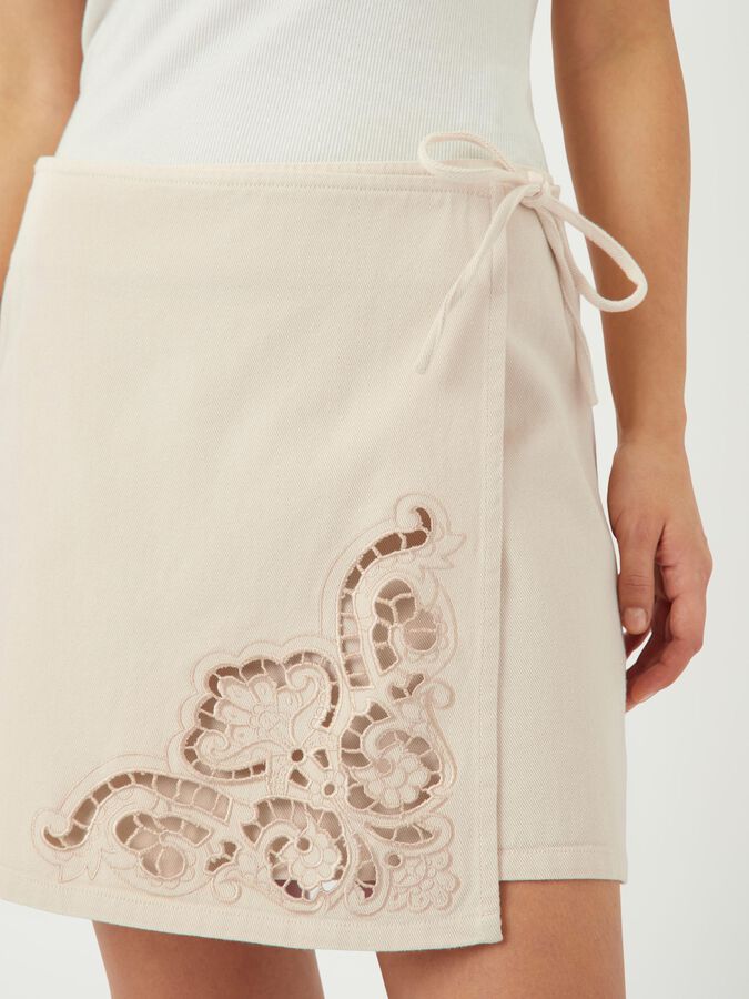 The festival collection is the destination for lux boho fashion featuring the latest trends and lots of details. Mix and match the styles to create feminine and eyecatching looks, perfect for festivals, glamping, roadtrips and casual parties. This style is made from a cotton fabric, which is a breathable natural fibre. Product type: Wrap skirt Closing : Button fastening Closing : Drawstring fastening Waist : High waist Length/Size : Mini length