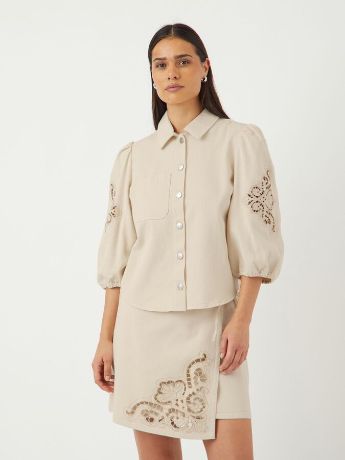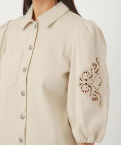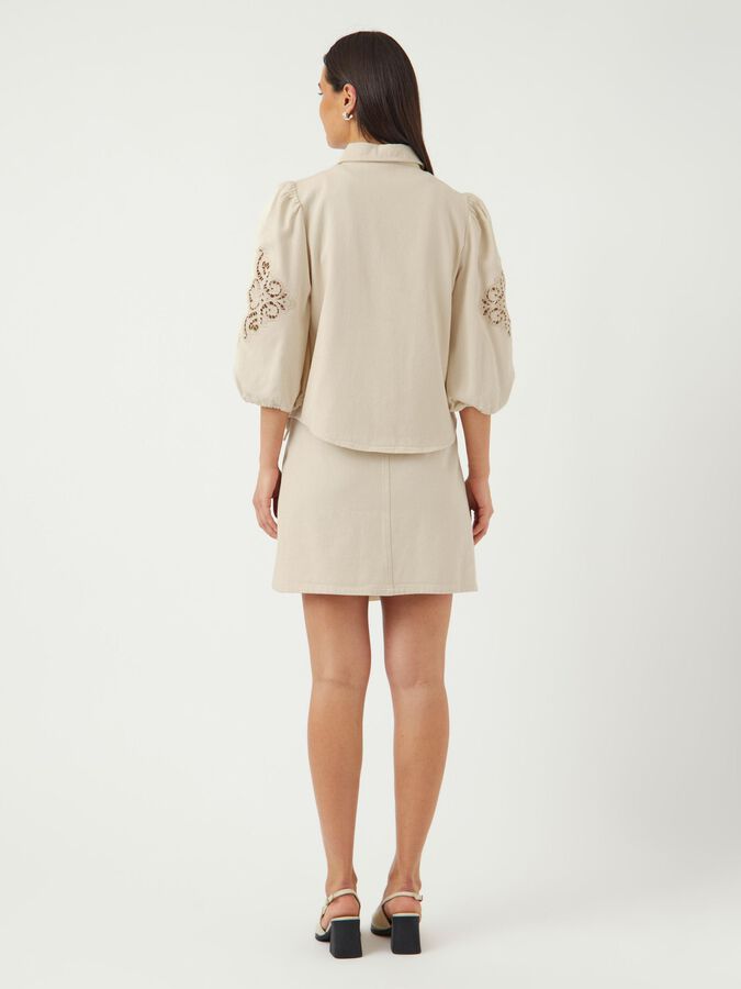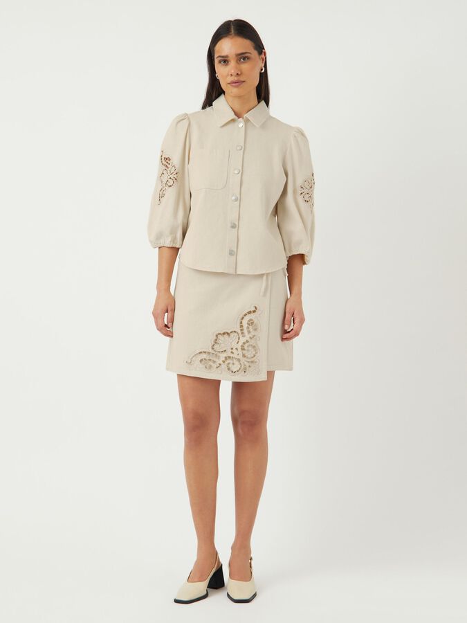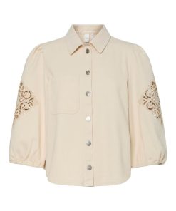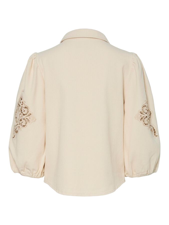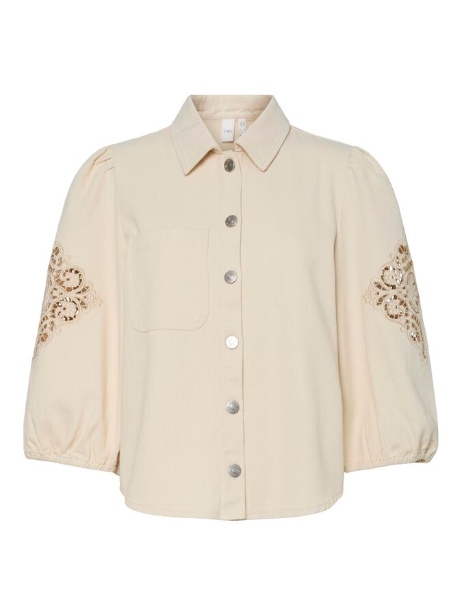 Get your summer wardrobe ready with our summer collection containing tops, skirts, breezy summer dresses, shorts and all you need in order to combine the perfect summer outfit. This style is made from a cotton fabric, which is a breathable natural fibre. Product type: Shirt Closing : Button fastening Neck : Shirt collar Sleeve : 2/4 sleeves Extra details: Broderie anglaise detail