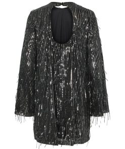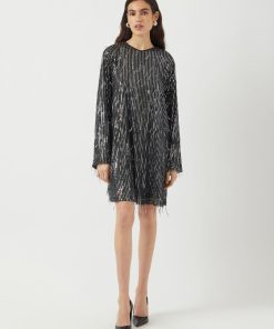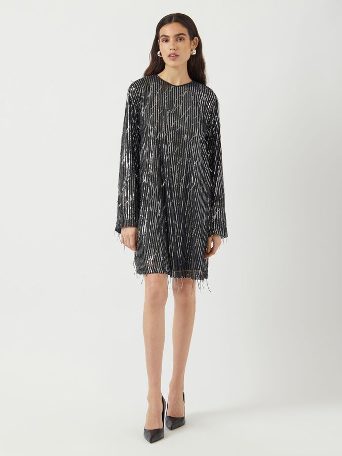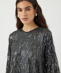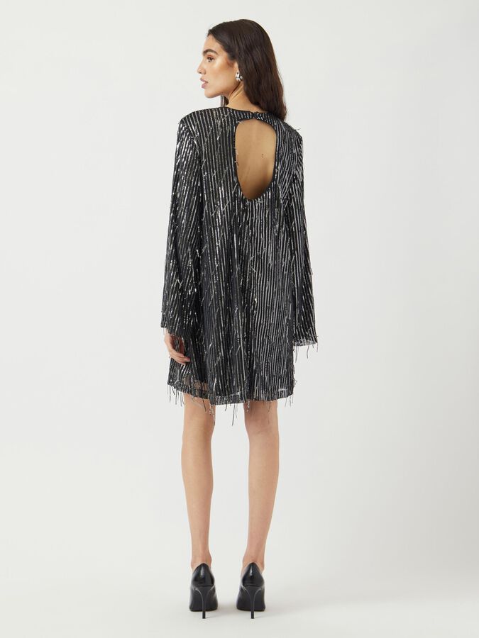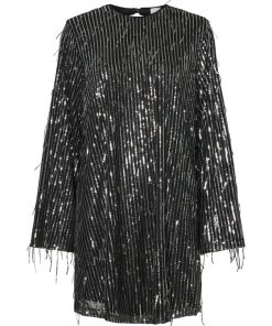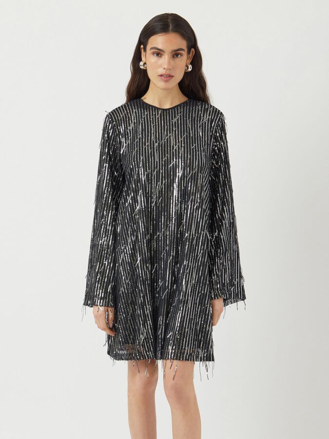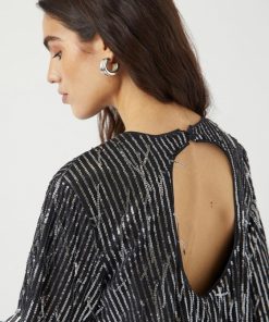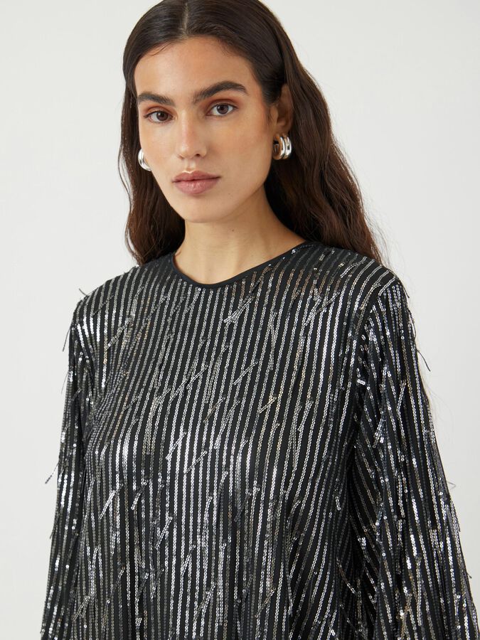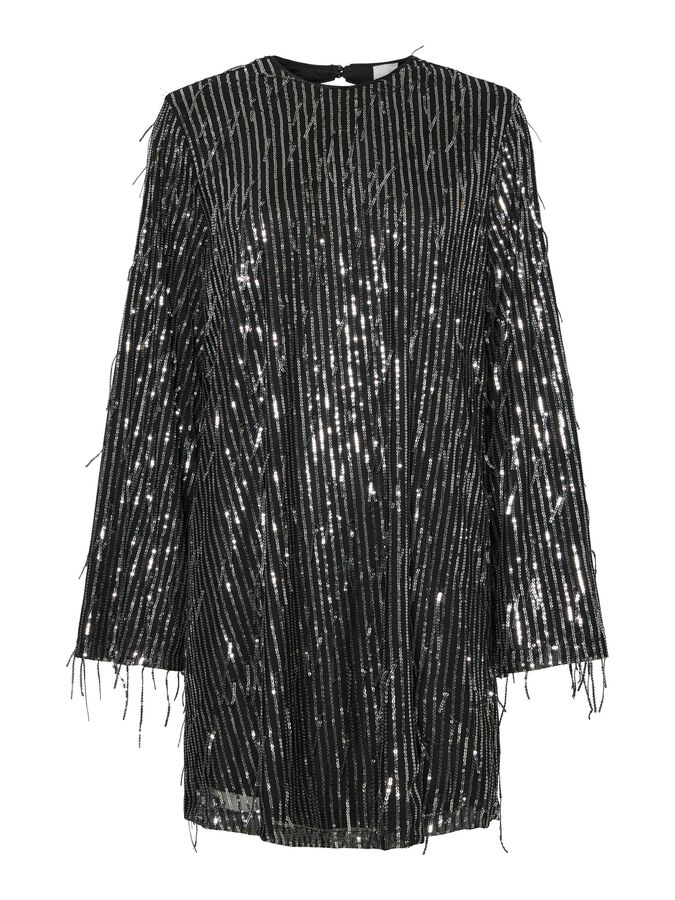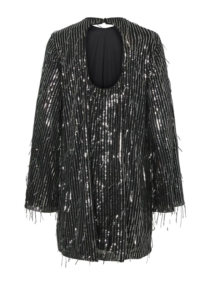 Dress up and celebrate all your special moments with our elegant and elevated party collection, designed to give you the confidence to stand out. This style is made from a glittery sequin fabric for an eyecatching look. Product type: Dress Closing : Button fastening Neck : VNeck Sleeve : 7/8 sleeves Length/Size : Short Lining : Polyester lining for a nontransparent look Extra details: Sequins Fit : Regular Fit