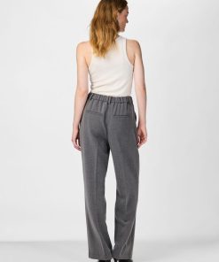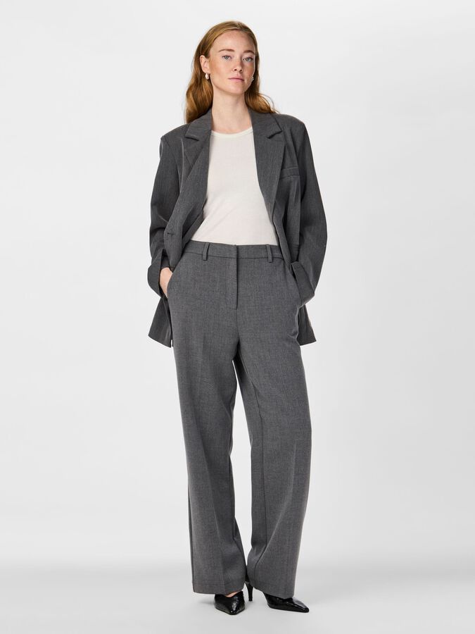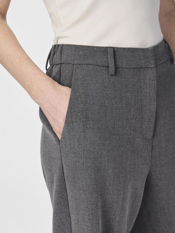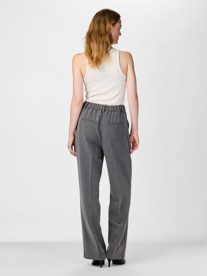 Wide leg tailored trousers Part of a matching set High waist elasticated in back Concealed zip fastening with hook & eye closure Belt loops Side seam pockets Back welt pockets Regular fit