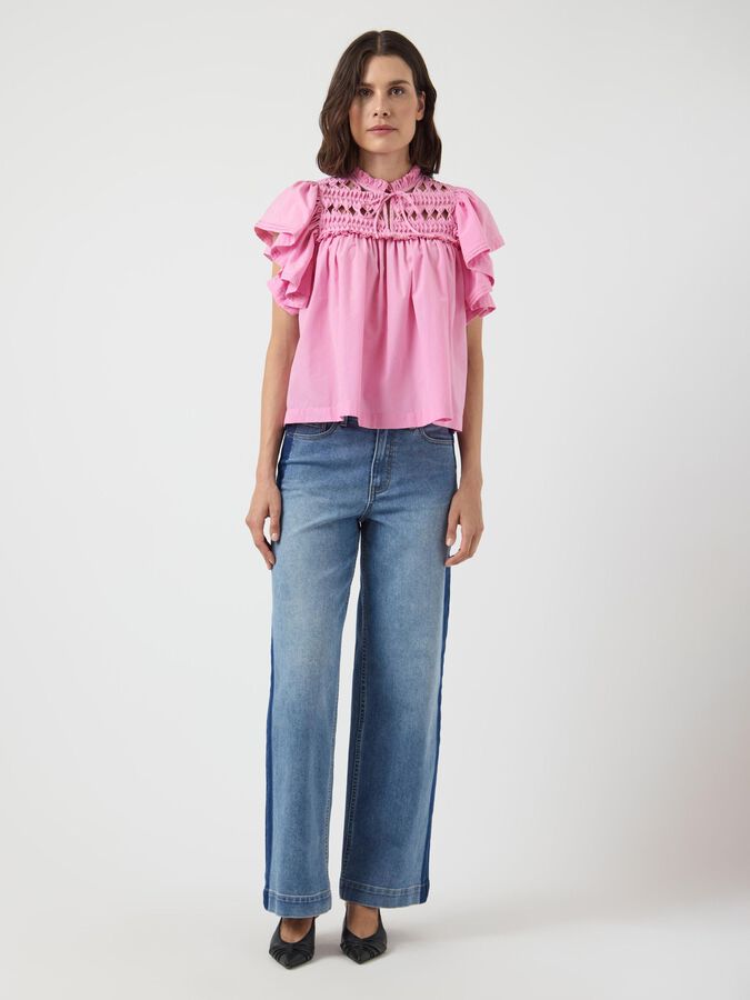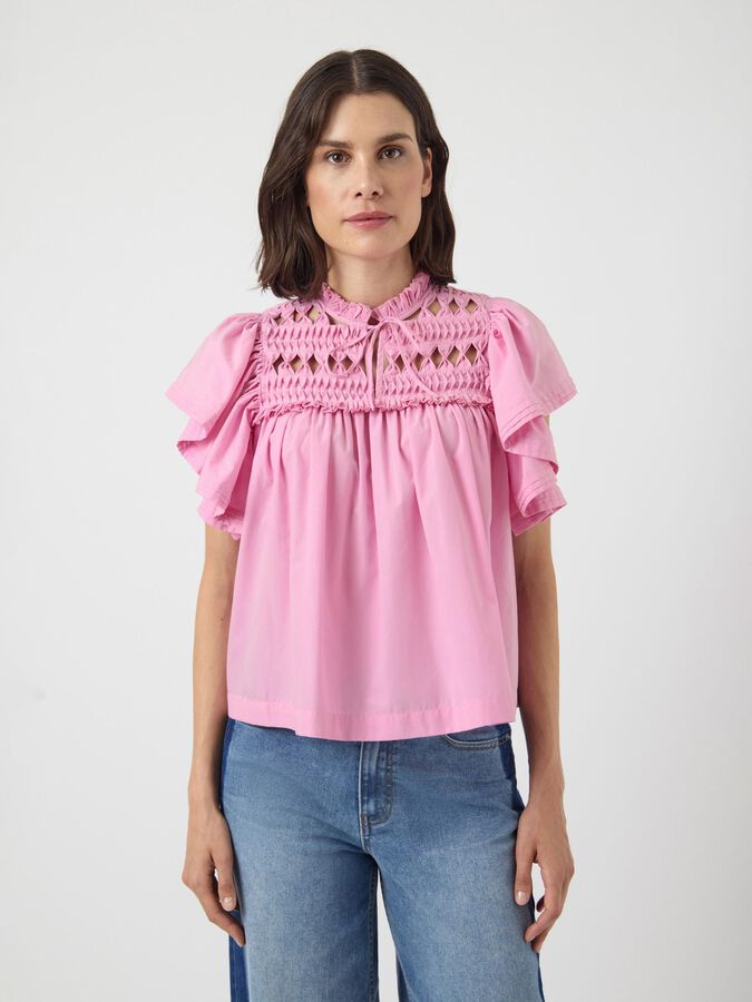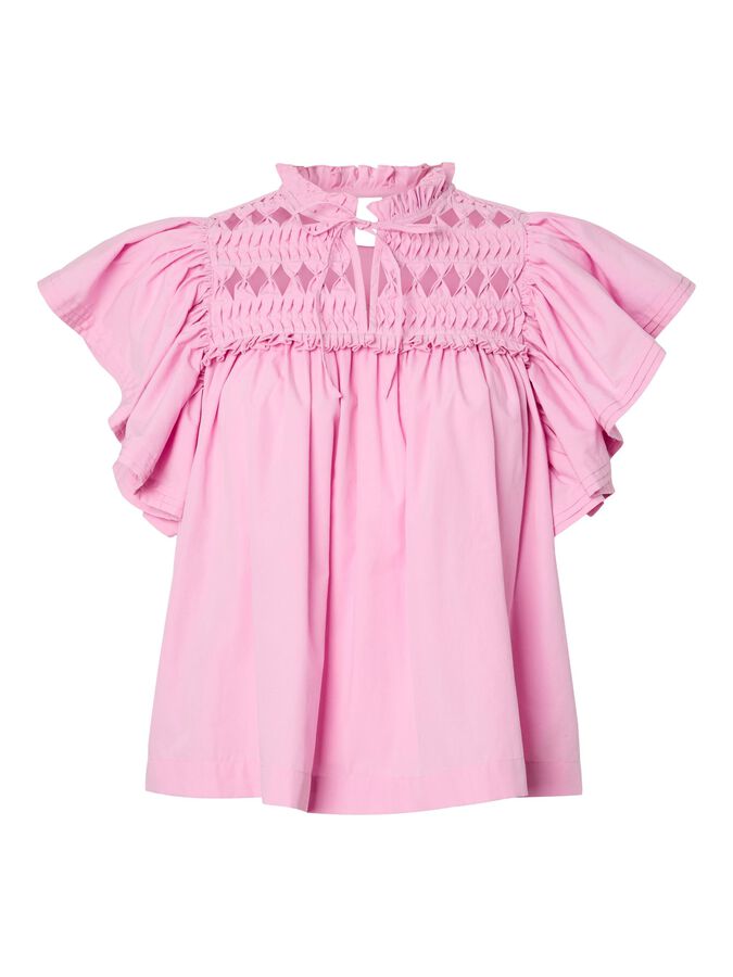 Celebrate summer with lightweight fabrics and playful silhouettes. Our summer collection has everything you need to create the perfect summer look. This style is made from a cotton fabric, which is a breathable natural fibre. Product type: Blouse Closing : Drawstring fastening Neck : High neck Sleeve : Short sleeves Extra details: Cutout detail Fit : Regular Fit