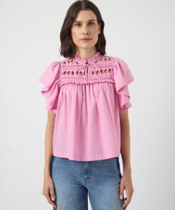 Celebrate summer with lightweight fabrics and playful silhouettes. Our summer collection has everything you need to create the perfect summer look. This style is made from a cotton fabric, which is a breathable natural fibre. Product type: Blouse Closing : Drawstring fastening Neck : High neck Sleeve : Short sleeves Extra details: Cutout detail Fit : Regular Fit