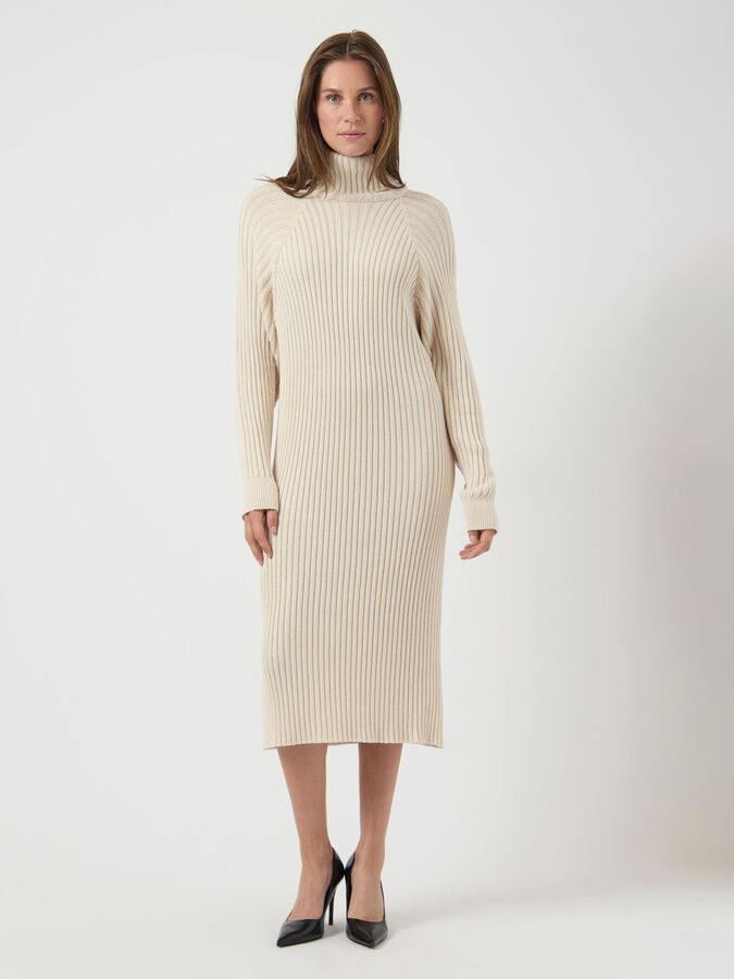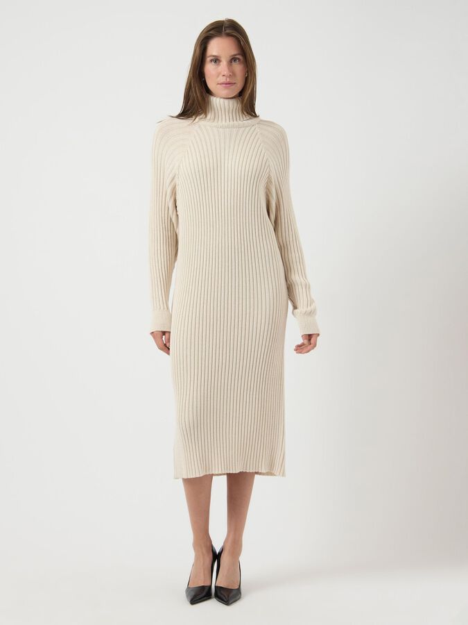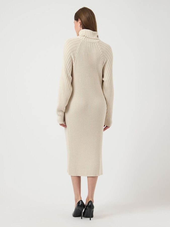Turtleneck Raglan shoulders Long sleeves with slim ribbed cuffs Midi length Allover ribbed quality Regular fit