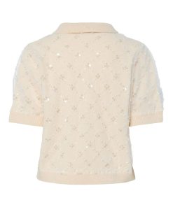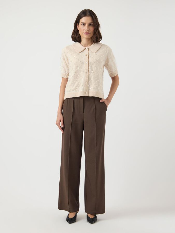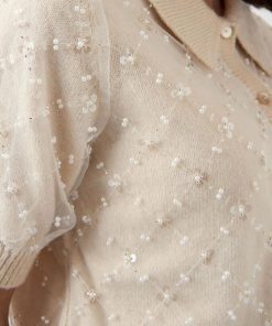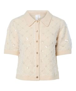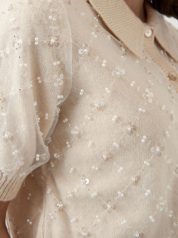 Capture the essence of autumn with our range of autumnal pieces in rich colours and charming silhouettes. Combine different textures and prints to create a layered look. Product type: Knitted cardigan Closing : Button fastening Neck : Shirt collar Sleeve : Short sleeves Cuffs : Ribbed cuffs Extra details: Sequins Fit : Regular Fit