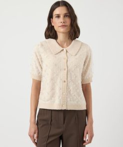 Capture the essence of autumn with our range of autumnal pieces in rich colours and charming silhouettes. Combine different textures and prints to create a layered look. Product type: Knitted cardigan Closing : Button fastening Neck : Shirt collar Sleeve : Short sleeves Cuffs : Ribbed cuffs Extra details: Sequins Fit : Regular Fit