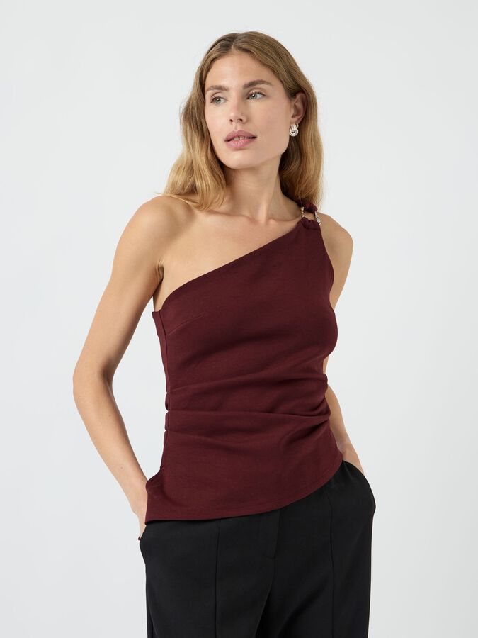 This style is made from a stretchy jersey fabric, ensuring a comfortable fit and soft feel. Product Type : Asymmetrical top Neck : One Shoulder Sleeve : Sleeveless (S/L) Fit : Slim Fit