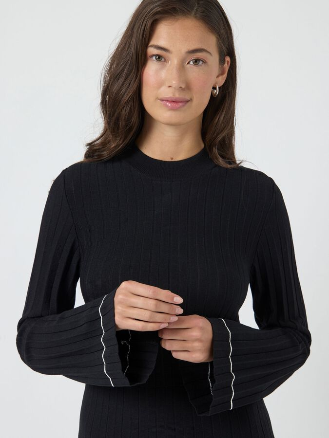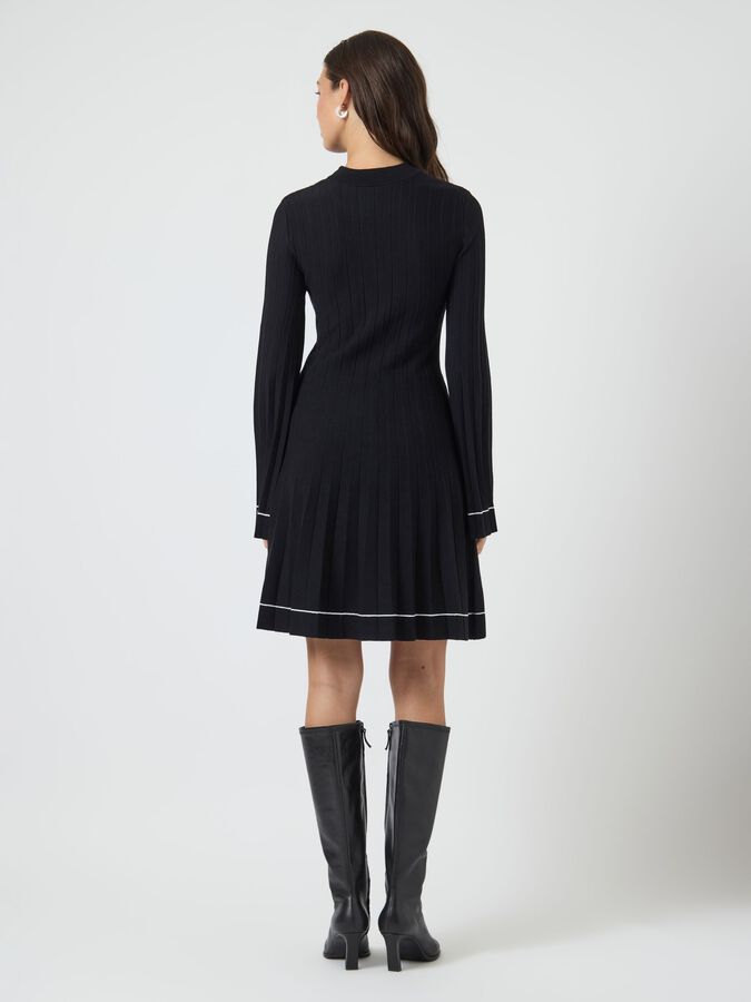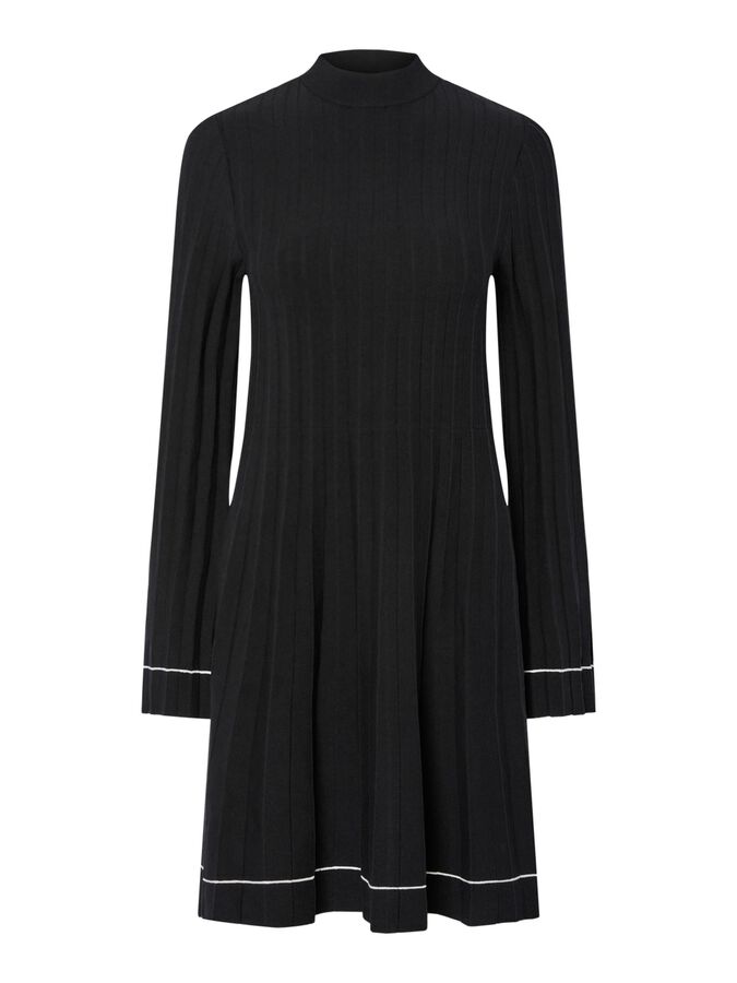 This style is made from a quality knitted blend of viscose and nylon with firm tension, making it suitable for a tighter fit. Product type: Knitted dress Neck : Round Neck Sleeve : Long sleeves Length/Size : Short Fit : Regular Fit