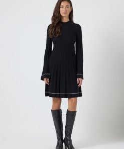 This style is made from a quality knitted blend of viscose and nylon with firm tension, making it suitable for a tighter fit. Product type: Knitted dress Neck : Round Neck Sleeve : Long sleeves Length/Size : Short Fit : Regular Fit