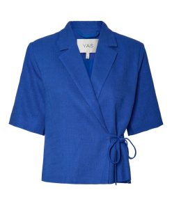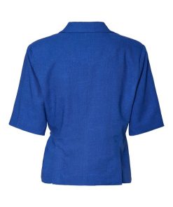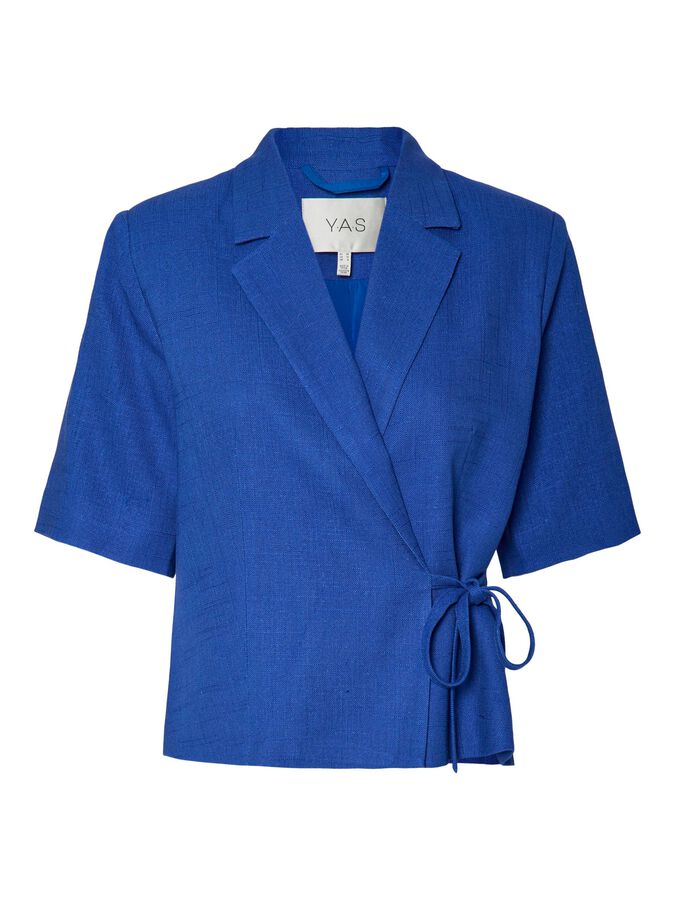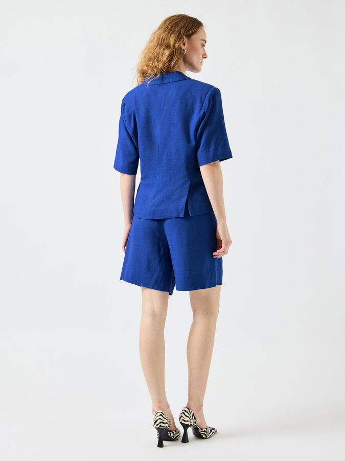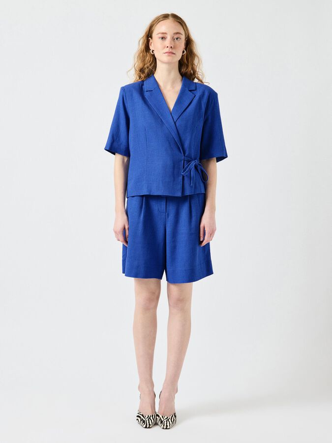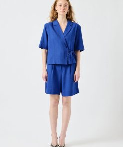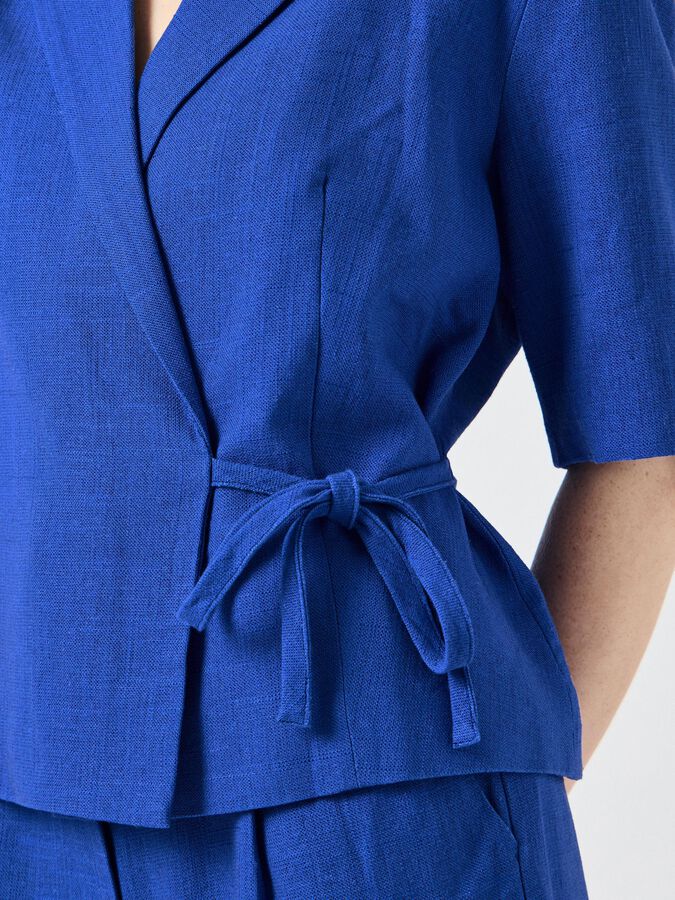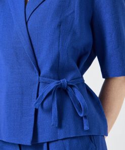 This style is made from a viscose fabric, which is breathable and drapes lightly to the body with a soft handfeel. Product type: Blazer Neck : Reverse Extra details: Bow detail Fit : Regular Fit