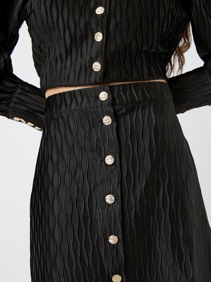 Add a touch of femininity to your look with a beautiful skirt. It is the perfect companion for your favourite top or shirt and is easy to style with knits and outerwear. This style is made from a polyester fabric, which is a very durable fabric. Product type: Aline skirt Closing : Button fastening Waist : High waist Length/Size : Short Lifestyle : Party Extra details: Elasticated waistband