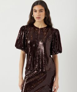Dress up and celebrate all your special moments with our elegant and elevated party collection, designed to give you the confidence to stand out. This style is made from a glittery sequin fabric for an eyecatching look. Product type: Tshirt Neck : Round Neck Sleeve : 2/4 sleeves Extra details: Sequins Fit : Regular Fit