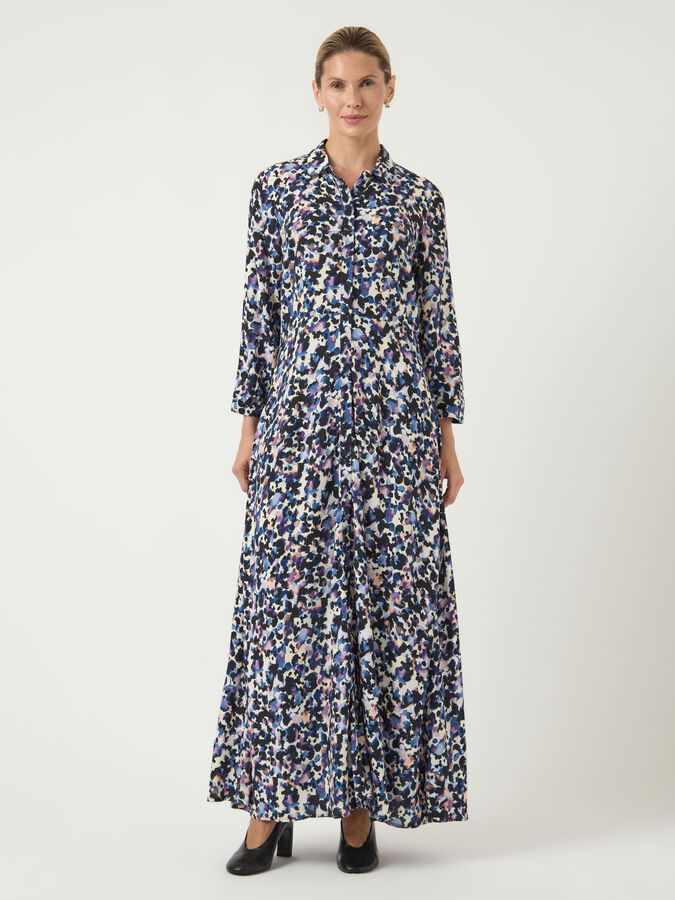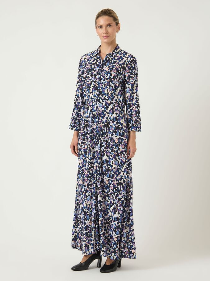 Add a selection of timeless basic pieces to ensure the perfect base for your wardrobe. This style is made from a viscose fabric, which is breathable and drapes lightly to the body with a soft handfeel. Product Type : Shirt dress Neck : VNeck Sleeve : 7/8 sleeves Closing : Button fastening Length/Size : Long Extra details : Cutline at waist Fit : Loose Fit