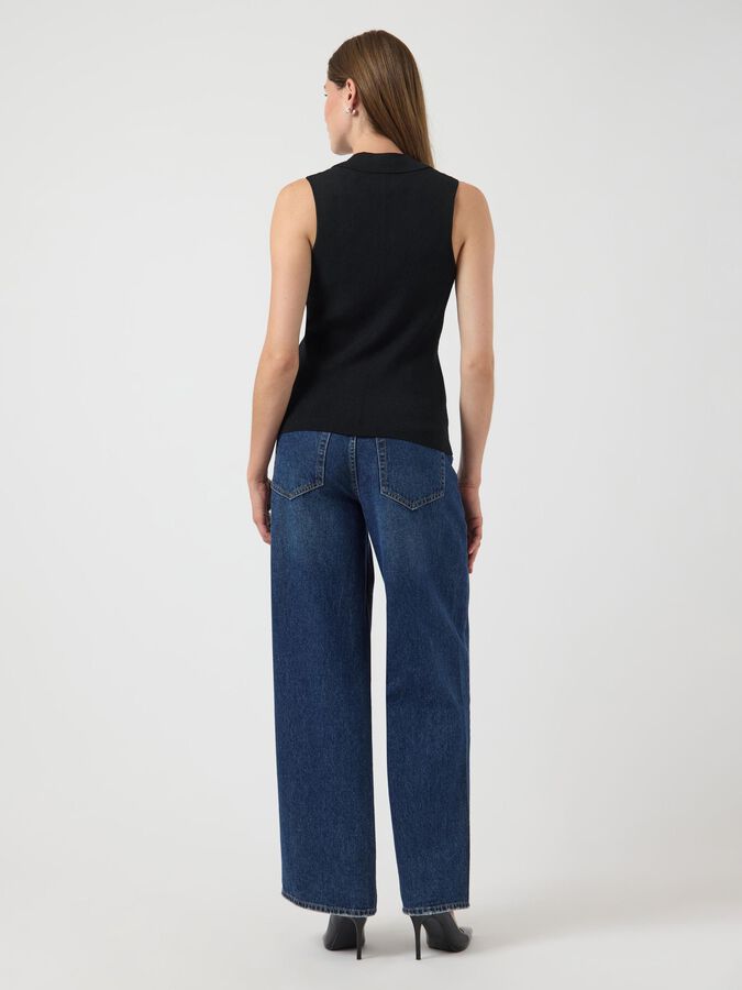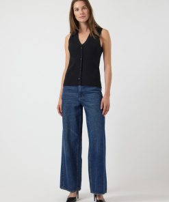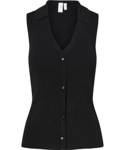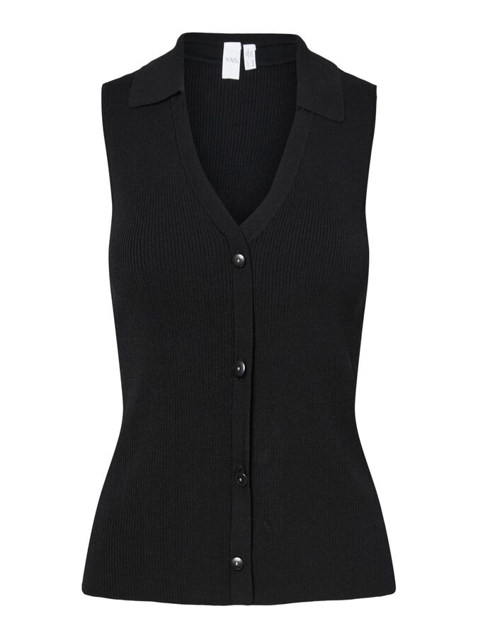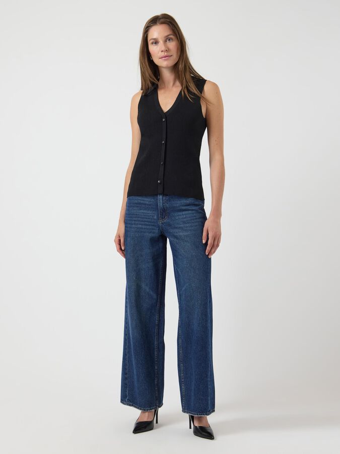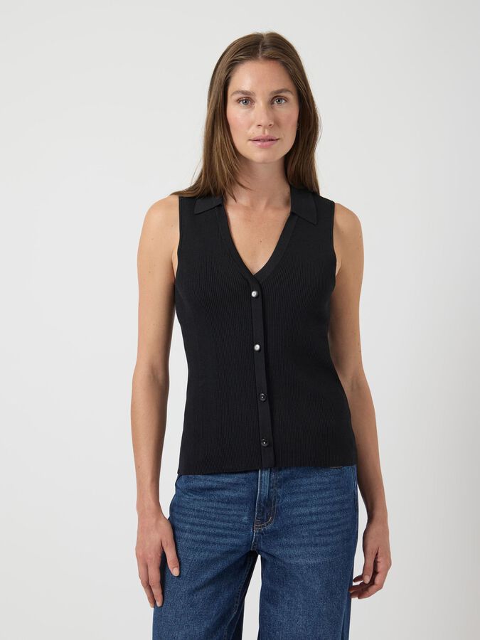 Build the perfect base with our selection of timeless basics, designed to complement your existing wardrobe. This style is made from a quality knitted blend of viscose and nylon with firm tension, making it suitable for a tighter fit. Product type: Blouse Closing : Button fastening Neck : VNeck Sleeve : Sleeveless Fit : Regular Fit