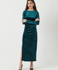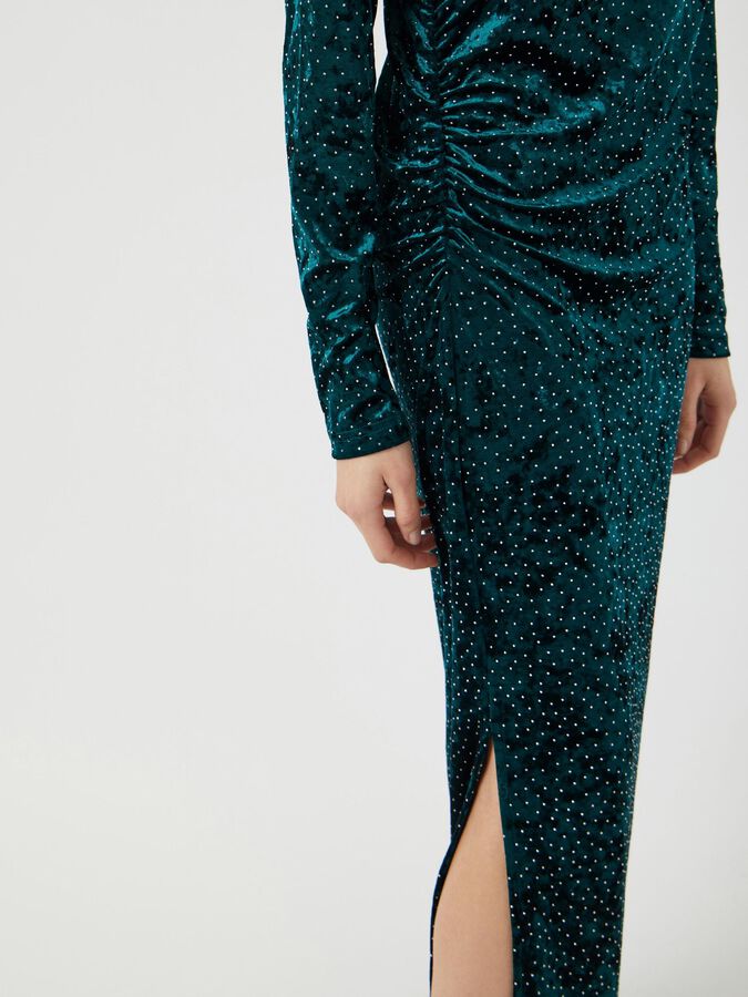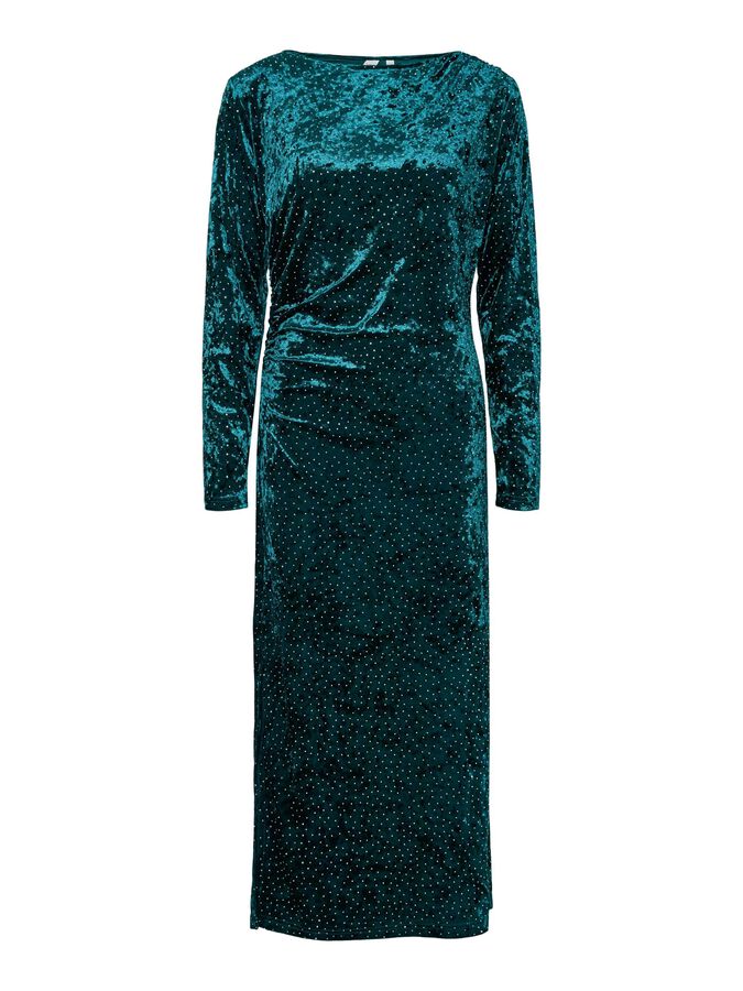 Dress up and celebrate all your special moments with our elegant and elevated party collection, designed to give you the confidence to stand out. This style is made from a velvet fabric with a soft and plush feel, making it comfortable to wear. Product type: Dress Neck : Round Neck Sleeve : Long sleeves Length/Size : Long Extra details: Rhinestones Fit : Regular Fit