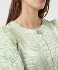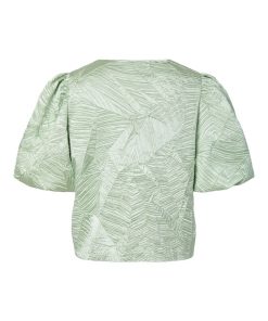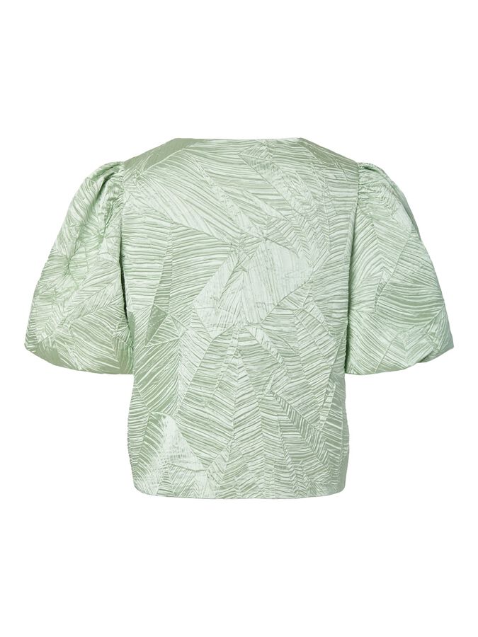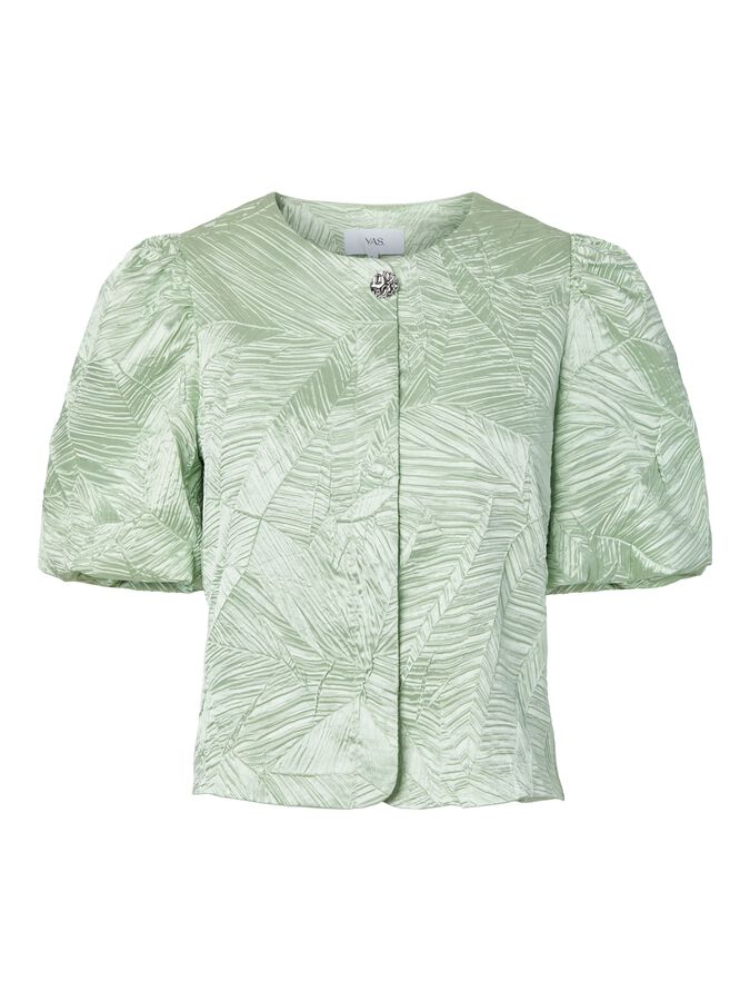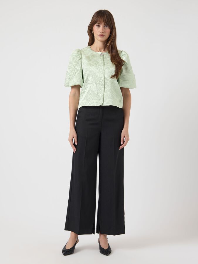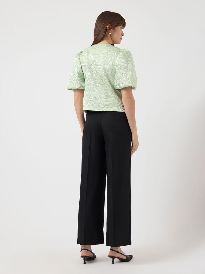 Capture the essence of autumn with our range of autumnal pieces in rich colours and charming silhouettes. Combine different textures and prints to create a layered look. This style is made from beautiful jacquard fabric, creating patterns and textures within the fabric for an elevated look. Product type: Blouse Closing : Button fastening Neck : Round Neck Sleeve : Short sleeves Length/Size : Cropped Fit : Regular Fit