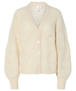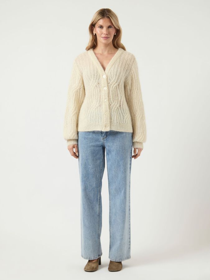 Get ready for the colder winter months in our range of knitwear, knitted dresses, trousers, shirts, outerwear and long dresses. This style is made from a mix of fibres, including wool. Wool is a natural fibre which is highly breathable. Wool is also temperature regulating, meaning it will keep you warm when it is cold, but also cool you down in warm weather. Product type: Knitted cardigan Closing : Button fastening Neck : VNeck Sleeve : Long sleeves Cuffs : Ribbed cuffs Fit : Regular Fit